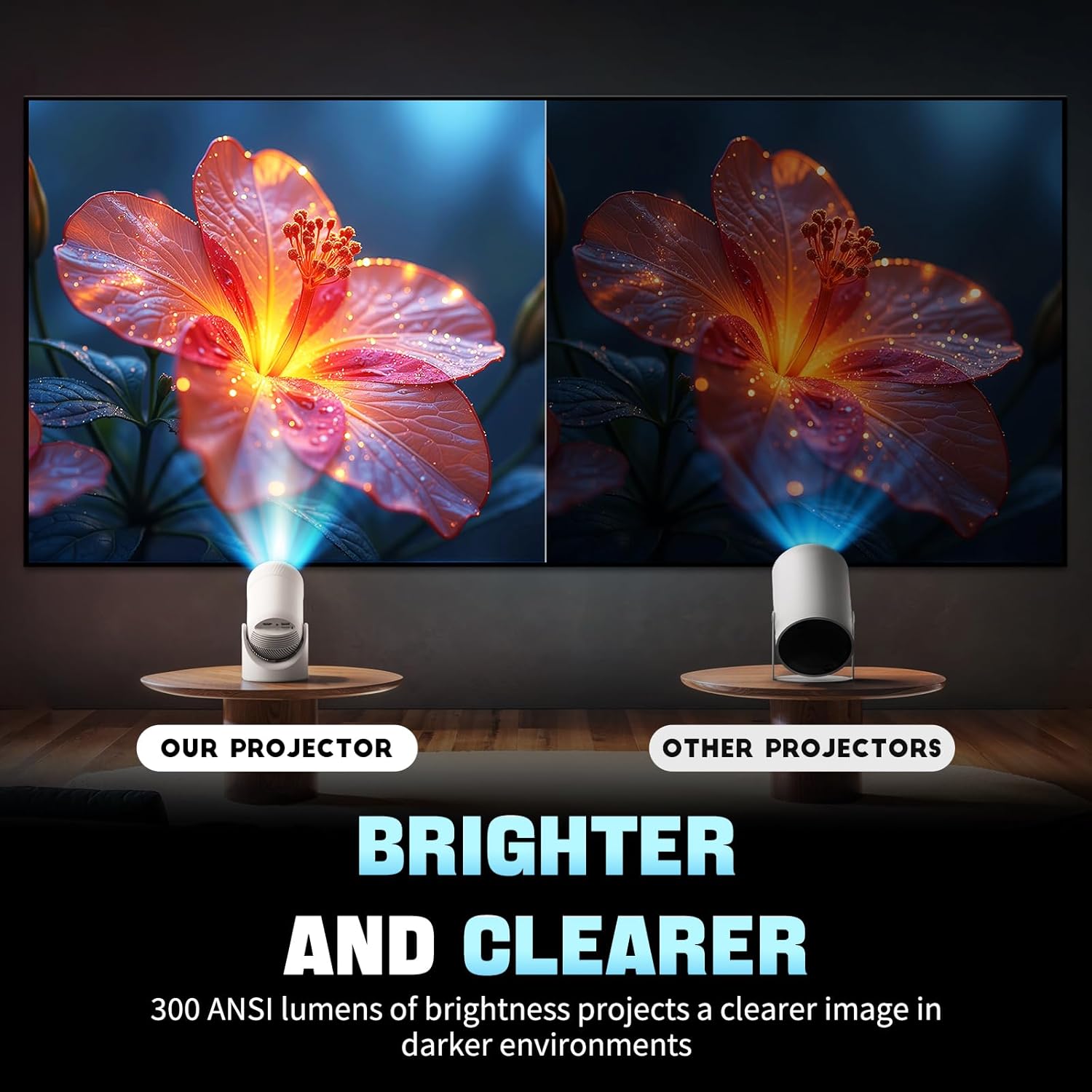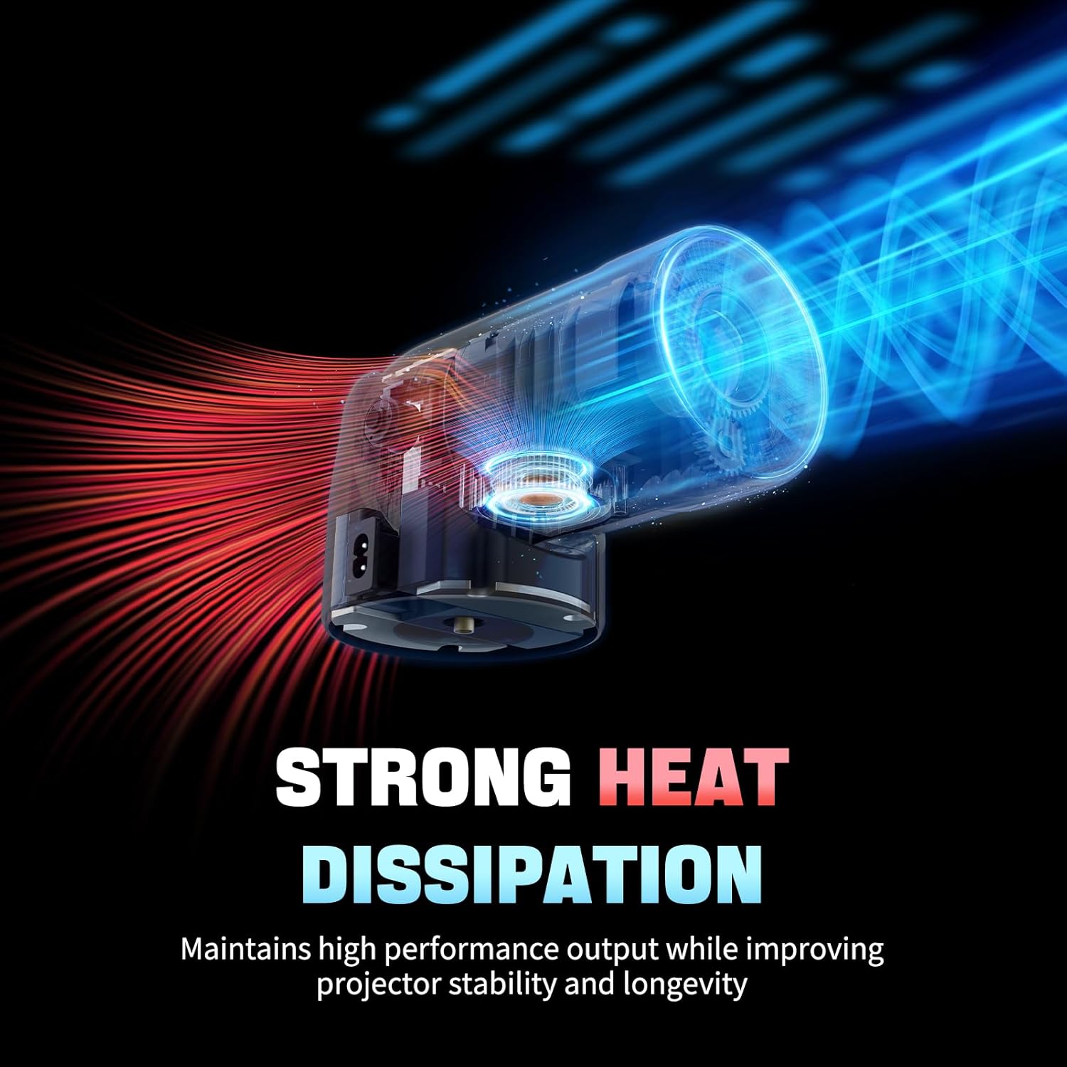 • 💎【Extended Lifespan, Crystal-Clear Image, Enhanced Safety】Engineered with a sophisticated aircraft-grade design, this Wi-Fi and Bluetooth projector enhances heat dissipation by 50%, extending its lifespan and ensuring durability. The upgraded optical engine delivers exceptional color accuracy and clarity, outperforming competitors in its class. Its thickened base provides rock-solid stability, while fireproof materials and reinforced wiring add an extra layer of safety for worry-free enjoyment
